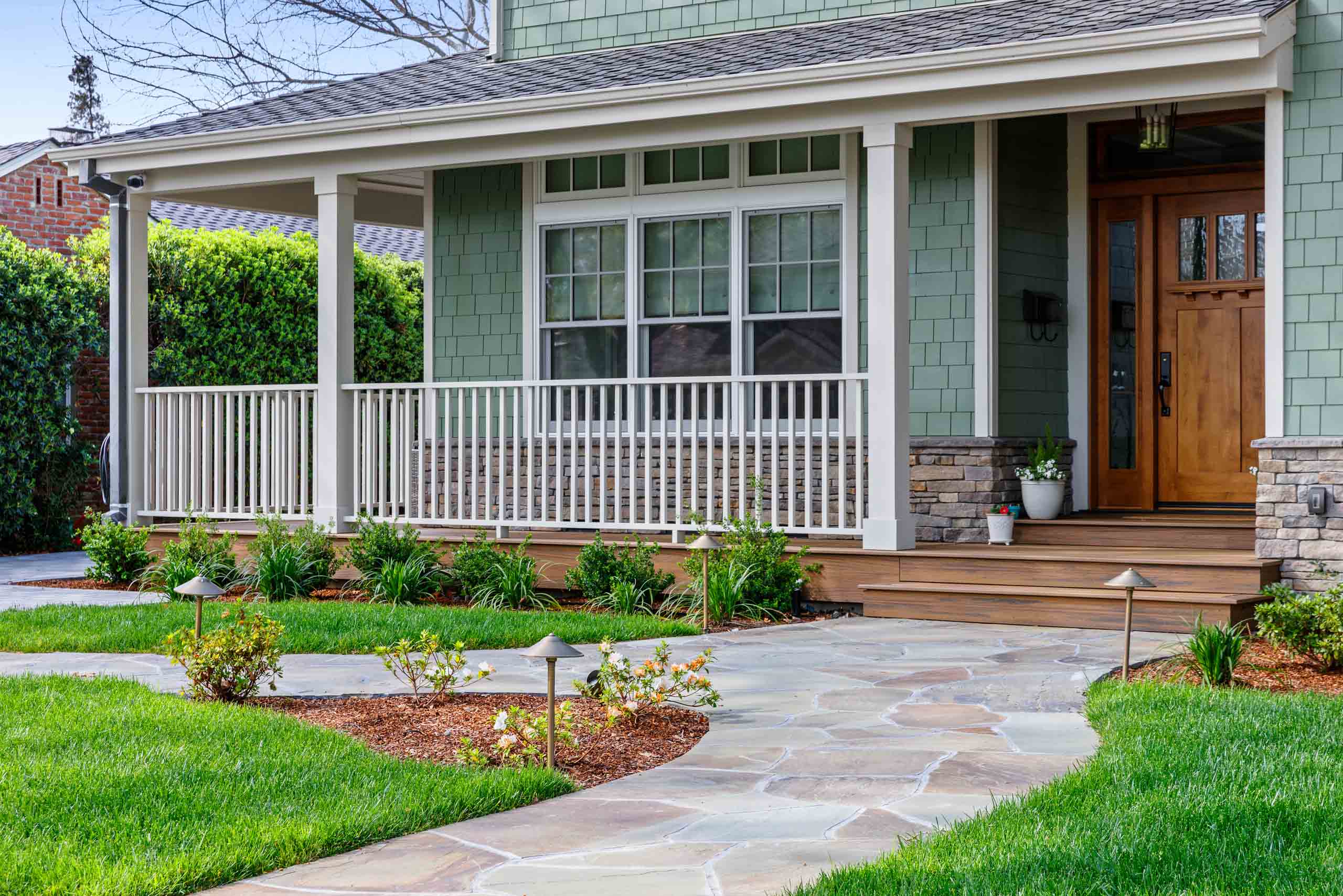 • Custom-cut irregular bluestone front walkway, carefully fabricated to match the design specifications.